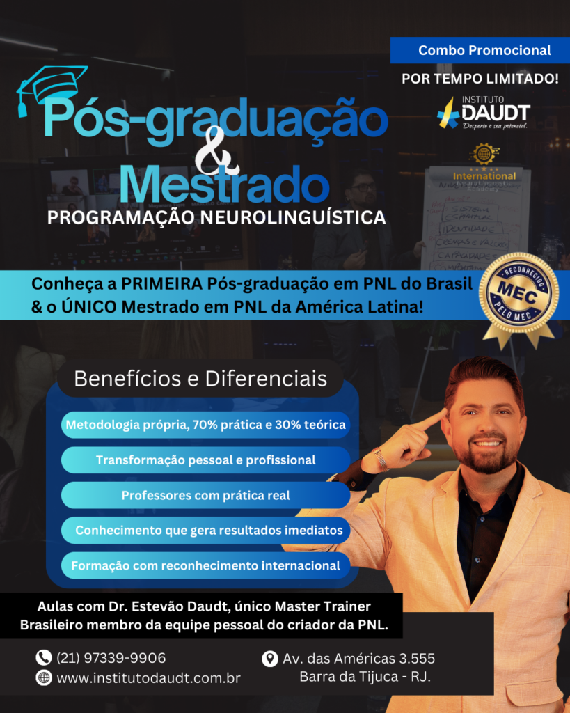 A Pós-Graduação em PNL com reconhecimento do MEC oferecida pelo Instituto Daudt é a maior referência do Brasil.